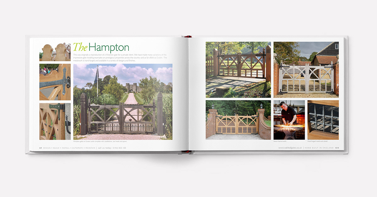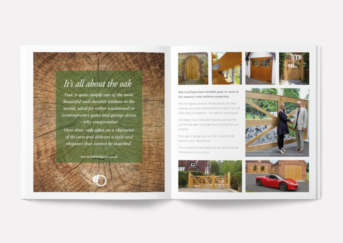 Oak Leaf Gates design and build beautiful bespoke gates and garage doors by hand from their workshops in Herefordshire. Sauce developed their distinctive branding and rolled it out into brochures, display materials, workwear and vehicle branding.